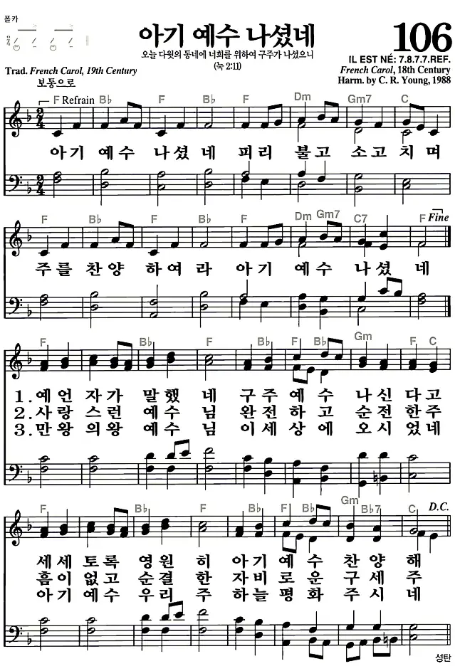새찬송가_악보] 106장 - 아기 예수 나셨네 다운로드(고화질/인쇄용)