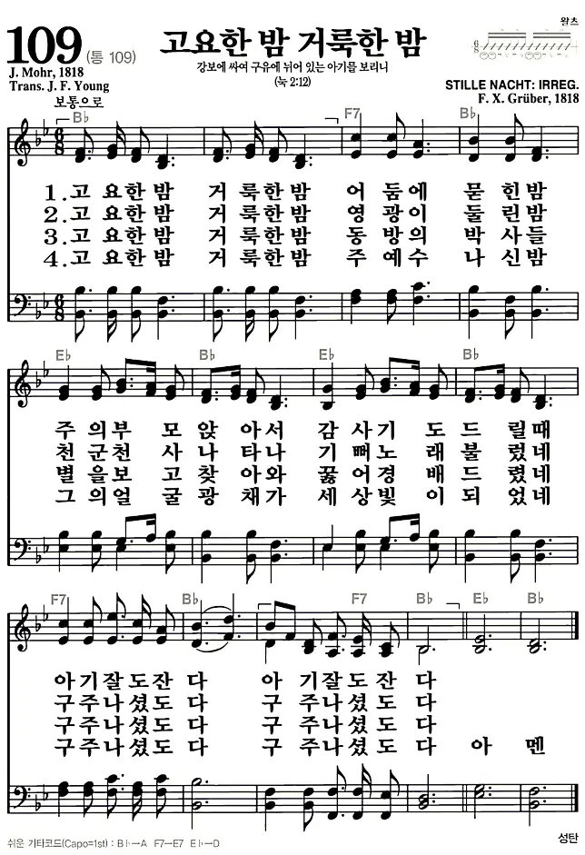 새찬송가_악보] 109장 - 고요한 밤 거룩한 밤 다운로드(고화질/인쇄용)