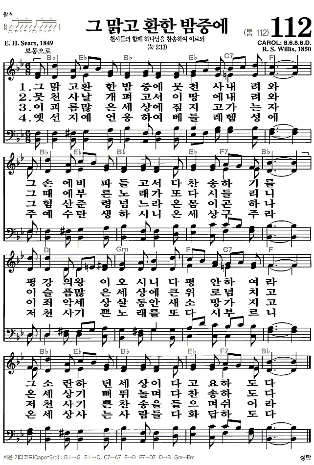 새찬송가_악보] 112장 - 그 맑고 환한 밤중에 다운로드(고화질/인쇄용)