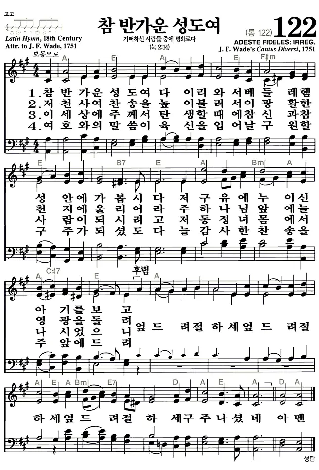 새찬송가_악보] 122장 - 참 반가운 성도여 다운로드(고화질/인쇄용)