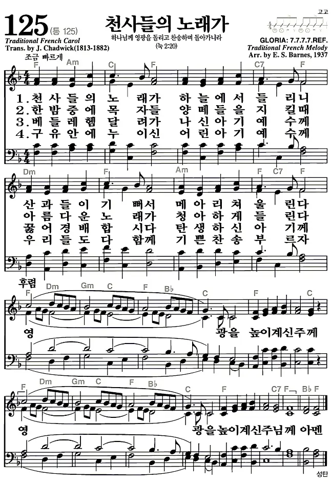 125장 - 천사들의 노래가 찬송가의 고화질 악보입니다.