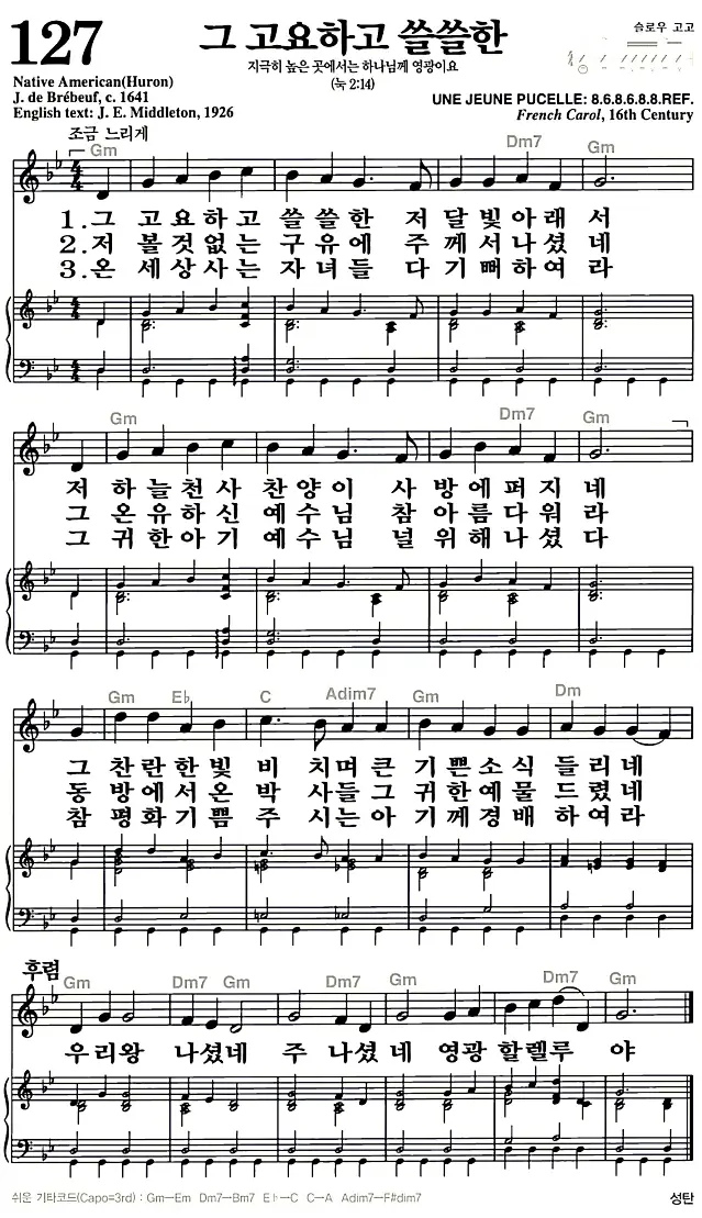 127장 - 그 고요하고 쓸쓸한 찬송가의 고화질 악보입니다.
