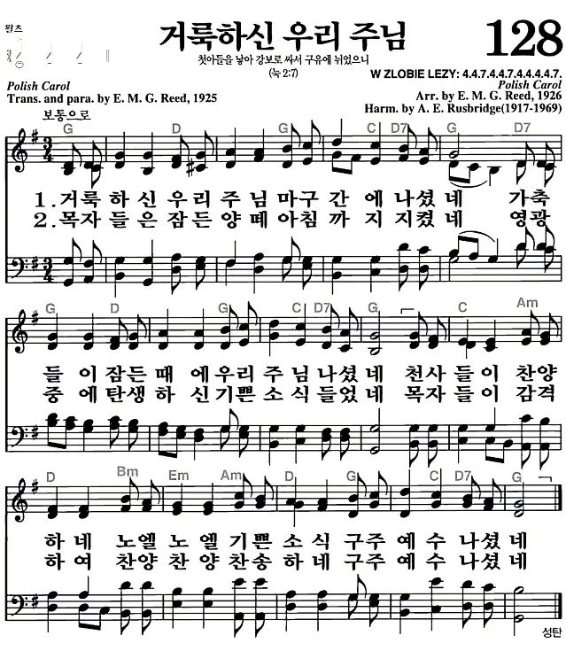 새찬송가_악보] 128장 - 거룩하신 우리 주님 다운로드(고화질/인쇄용)