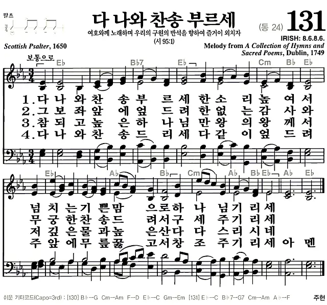새찬송가_악보] 131장 - 다 나와 찬송 부르세 다운로드(고화질/인쇄용)