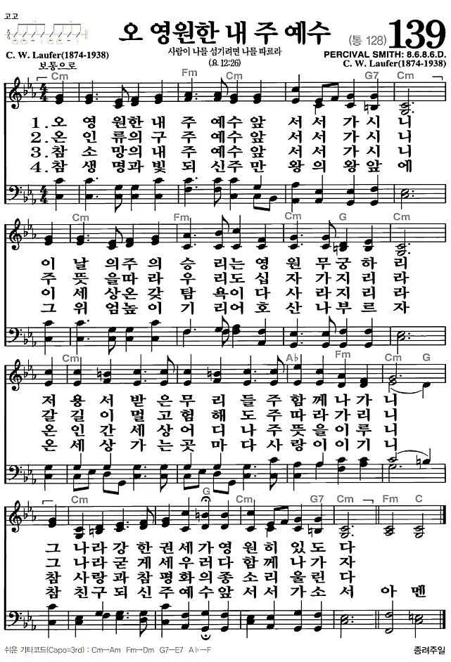 새찬송가_악보] 139장 - 오 영원한 내 주 예수 다운로드(고화질/인쇄용)