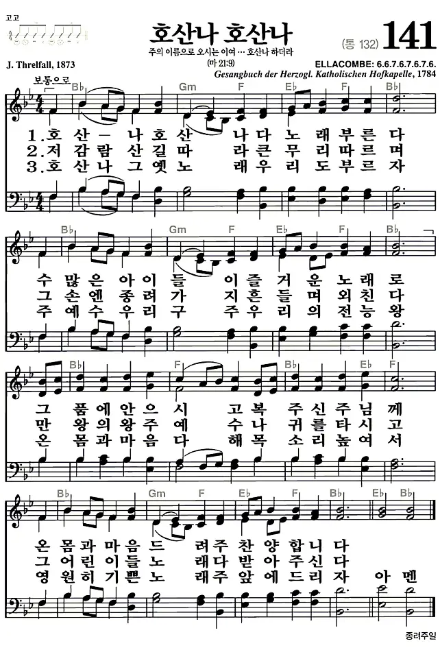새찬송가_악보] 141장 - 호산나 호산나 다운로드(고화질/인쇄용)