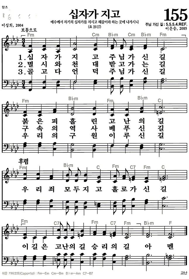 새찬송가_악보] 155장 - 십자가 지고 다운로드(고화질/인쇄용)