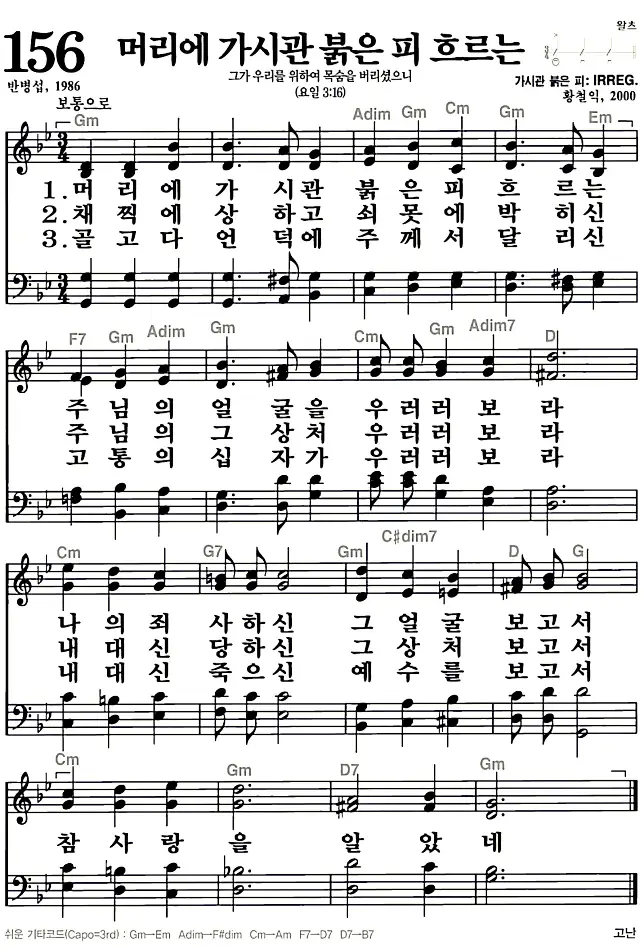 새찬송가_악보] 156장 - 머리에 가시관 붉은 피 흐르는 다운로드(고화질/인쇄용)