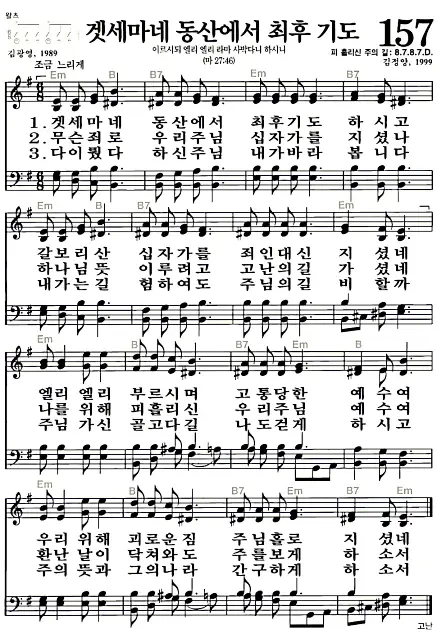 새찬송가_악보] 157장 - 겟세마네 동산에서 최후 기도 다운로드(고화질/인쇄용)