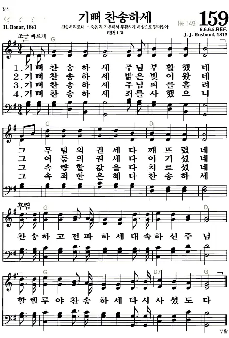 159장 - 기뻐 찬송하세 찬송가의 고화질 악보입니다.