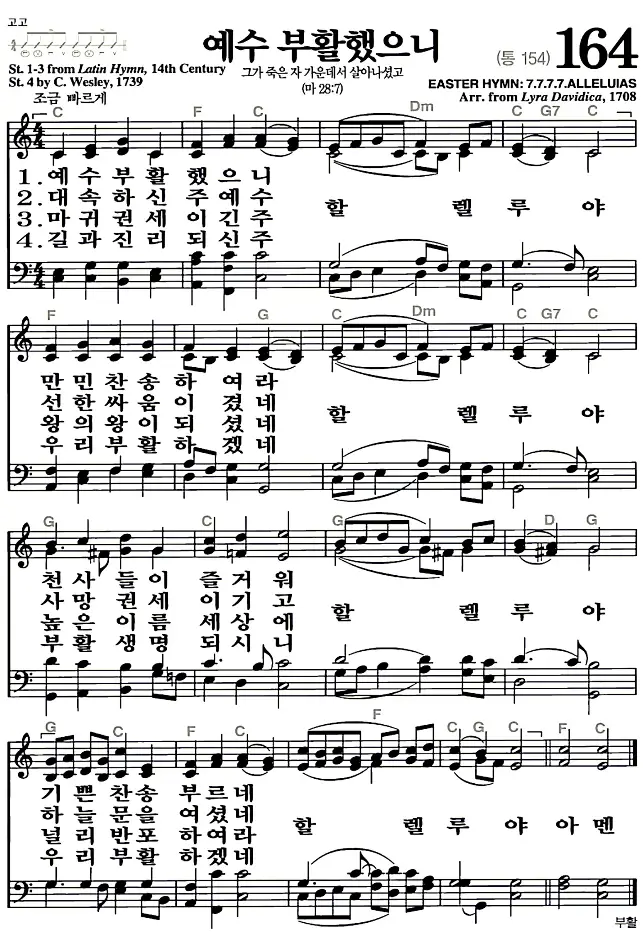 164장 - 예수 부활했으니 찬송가의 고화질 악보입니다.