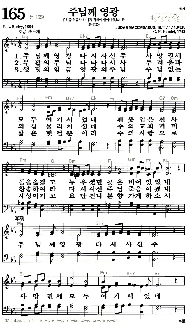 165장 - 주님께 영광 찬송가의 고화질 악보입니다.