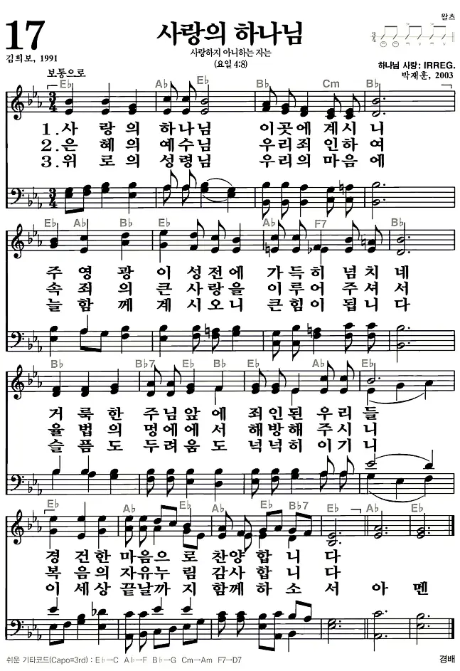 17장 - 사랑의 하나님 찬송가의 고화질 악보입니다.