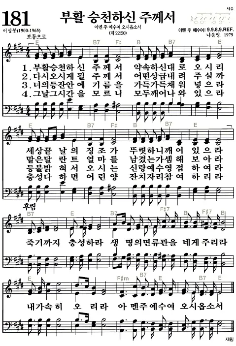 새찬송가_악보] 181장 - 부활 승천하신 주께서 다운로드(고화질/인쇄용)