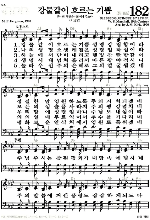 새찬송가_악보] 182장 - 강물 같이 흐르는 기쁨 다운로드(고화질/인쇄용)