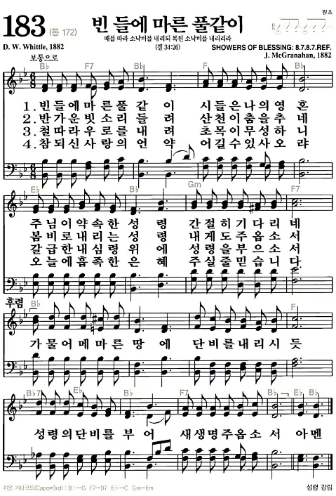 새찬송가_악보] 183장 - 빈 들에 마른 풀같이 다운로드(고화질/인쇄용)