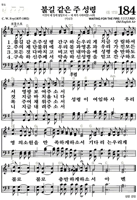 새찬송가_악보] 184장 - 불길 같은 주 성령 다운로드(고화질/인쇄용)