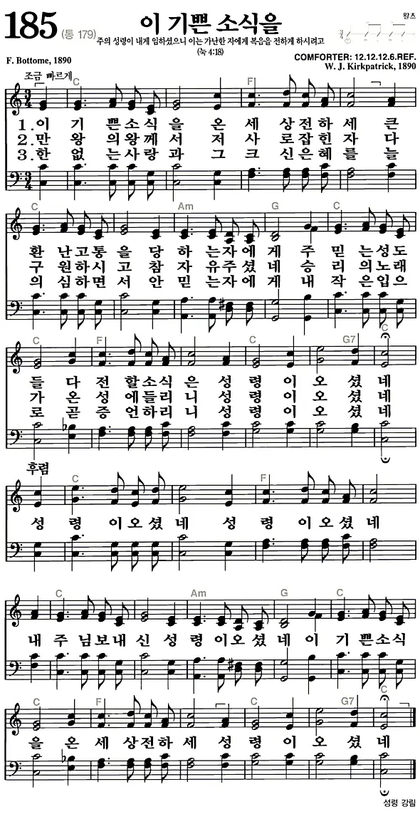 새찬송가_악보] 185장 - 이 기쁜 소식을 다운로드(고화질/인쇄용)