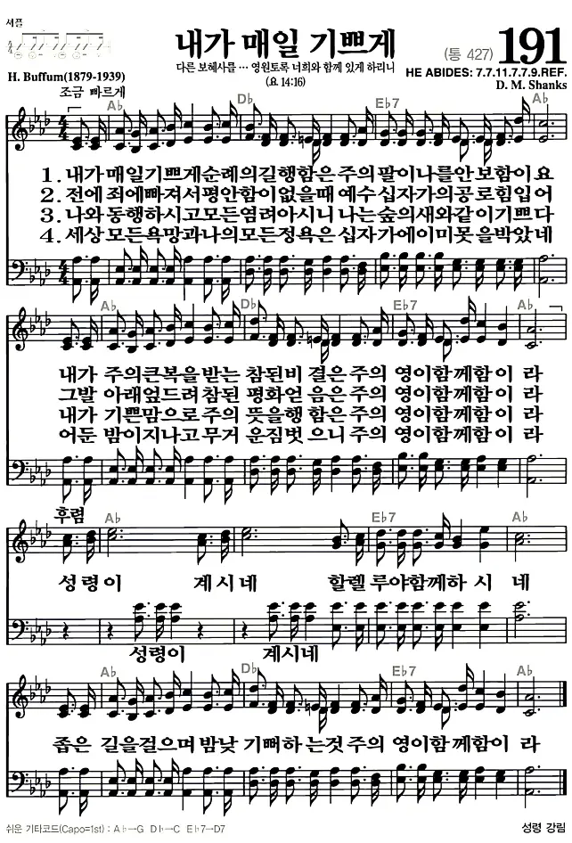 새찬송가_악보] 191장 - 내가 매일 기쁘게 다운로드(고화질/인쇄용)