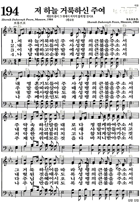 새찬송가_악보] 194장 - 저 하늘 거룩하신 주여 다운로드(고화질/인쇄용)