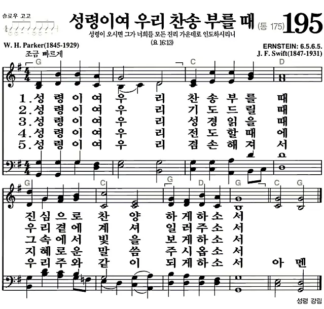 새찬송가_악보] 195장 - 성령이여 우리 찬송 부를 때 다운로드(고화질/인쇄용)