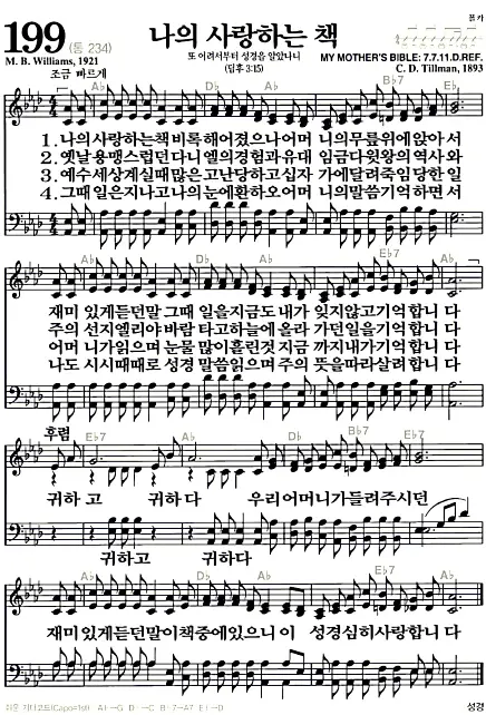 새찬송가_악보] 199장 - 나의 사랑하는 책 다운로드(고화질/인쇄용)