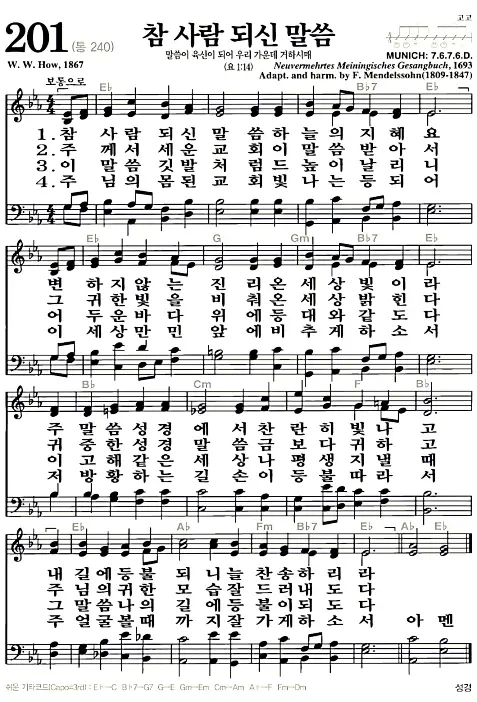 새찬송가_악보] 201장 - 참 사람 되신 말씀 다운로드(고화질/인쇄용)