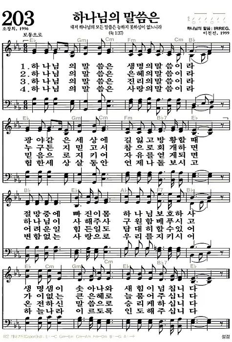 새찬송가_악보] 203장 - 하나님의 말씀은 다운로드(고화질/인쇄용)