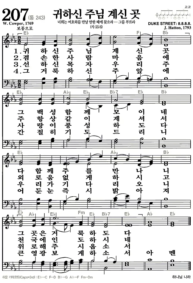 새찬송가_악보] 207장 - 귀하신 주님 계신 곳 다운로드(고화질/인쇄용)