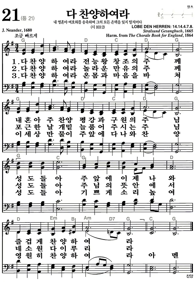 새찬송가_악보] 21장 - 다 찬양하여라 다운로드(고화질/인쇄용)
