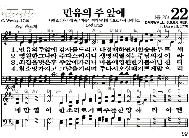 새찬송가_악보] 22장 - 만유의 주 앞에 다운로드(고화질/인쇄용)