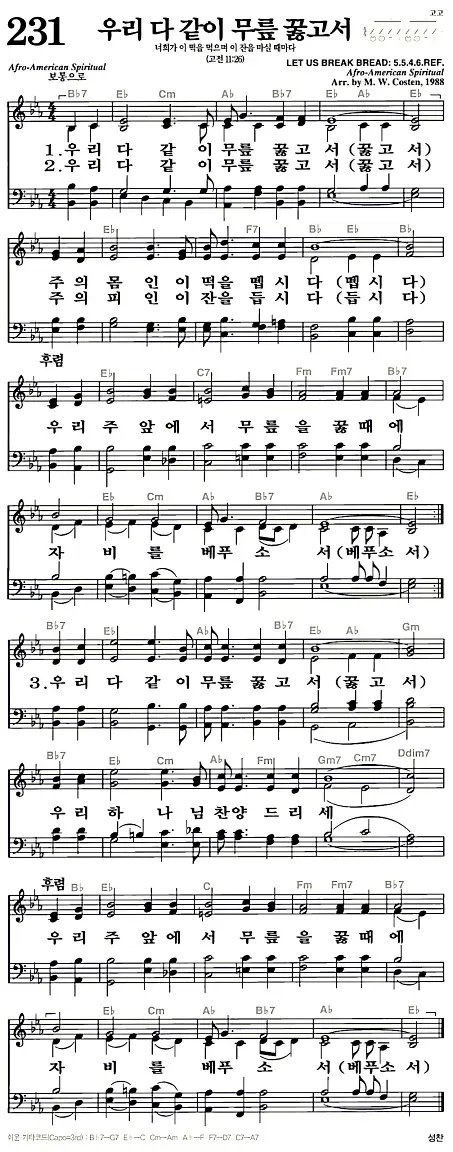새찬송가_악보] 231장 - 우리 다 같이 무릎 꿇고서 다운로드(고화질/인쇄용)