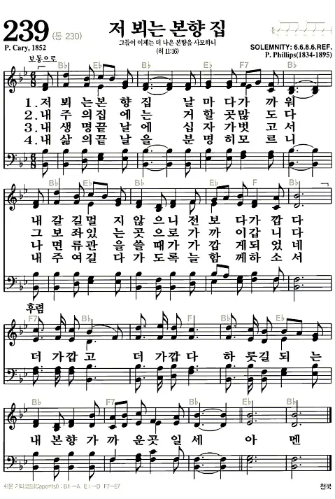 새찬송가_악보] 239장 - 저 뵈는 본향 집 다운로드(고화질/인쇄용)