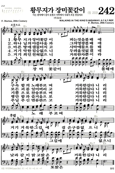 새찬송가_악보] 242장 - 황무지가 장미꽃같이 다운로드(고화질/인쇄용)