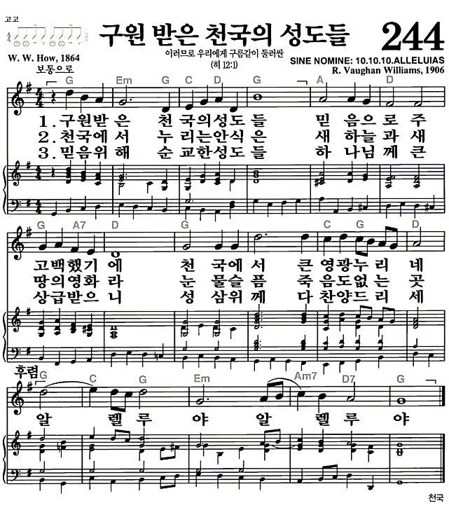 새찬송가_악보] 244장 - 구원 받은 천국의 성도들 다운로드(고화질/인쇄용)