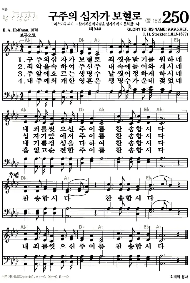 새찬송가_악보] 250장 - 구주의 십자가 보혈로 다운로드(고화질/인쇄용)