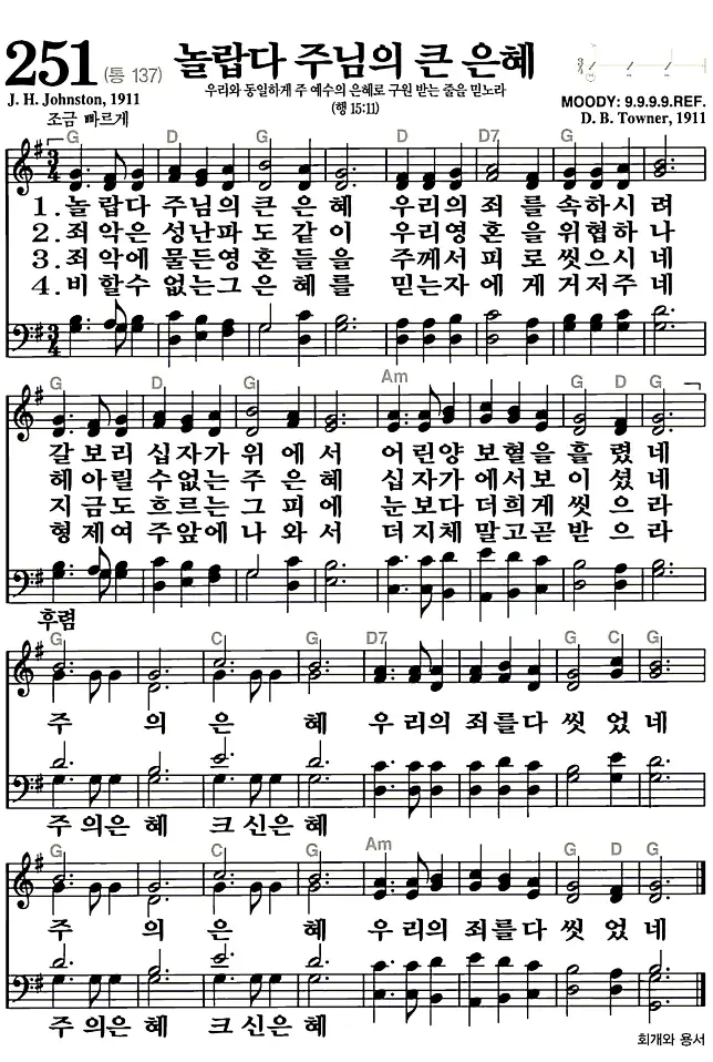 새찬송가_악보] 251장 - 놀랍다 주님의 큰 은혜 다운로드(고화질/인쇄용)