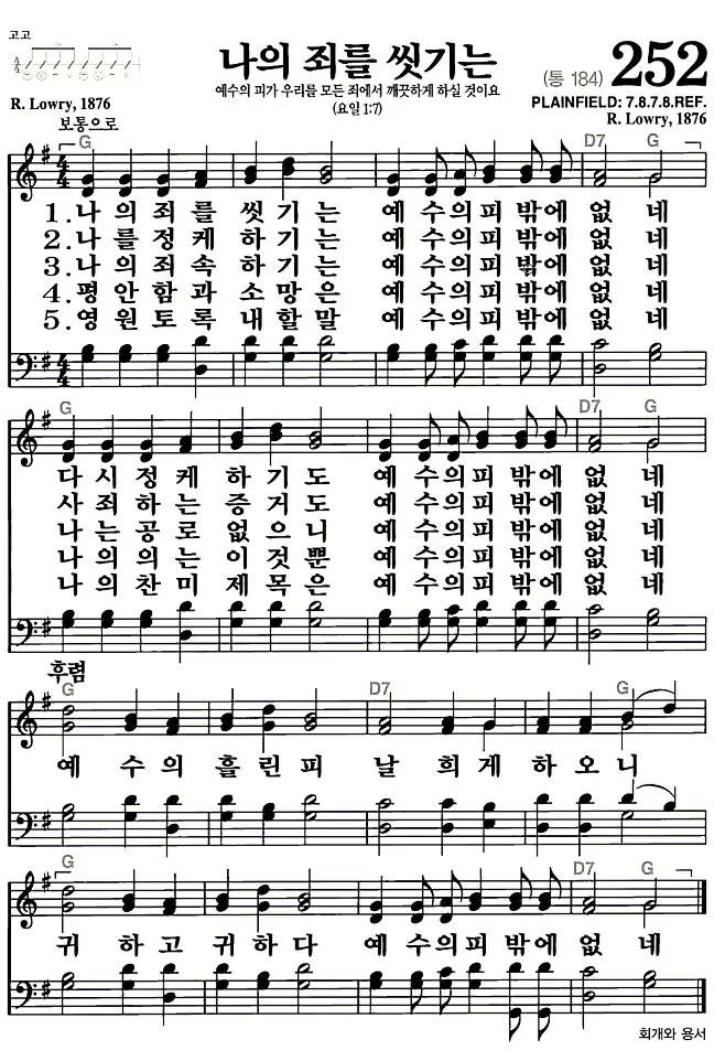 새찬송가_악보] 252장 - 나의 죄를 씻기는 다운로드(고화질/인쇄용)