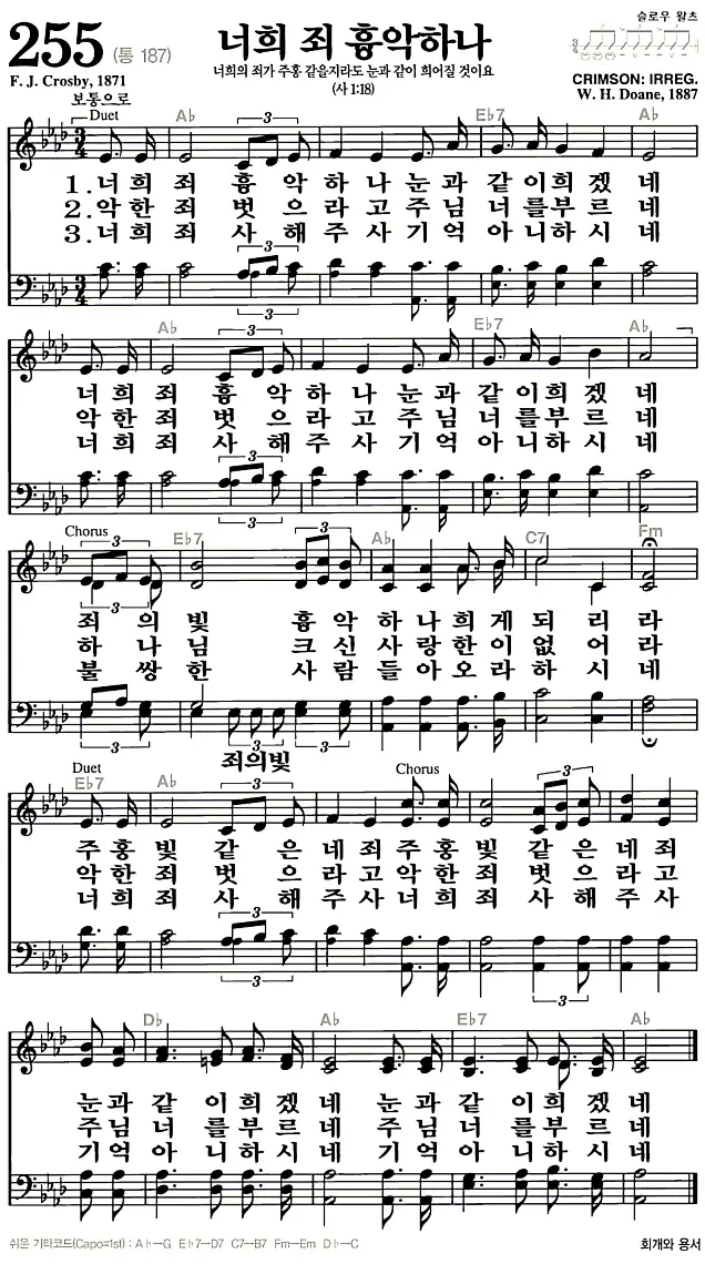 새찬송가_악보] 255장 - 너희 죄 흉악하나 다운로드(고화질/인쇄용)
