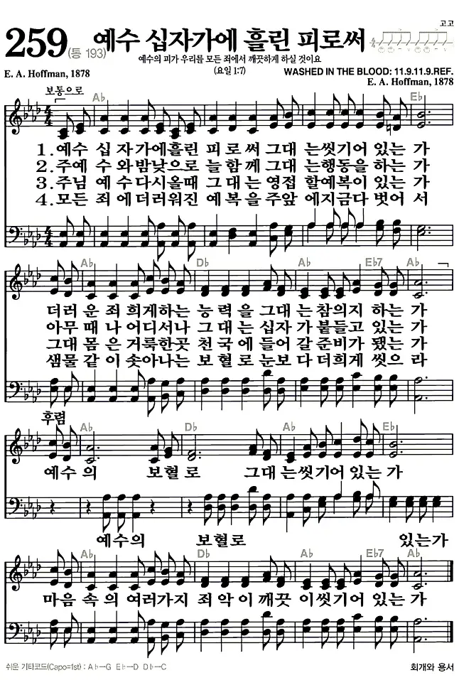 새찬송가_악보] 259장 - 예수 십자가에 흘린 피로써 다운로드(고화질/인쇄용)