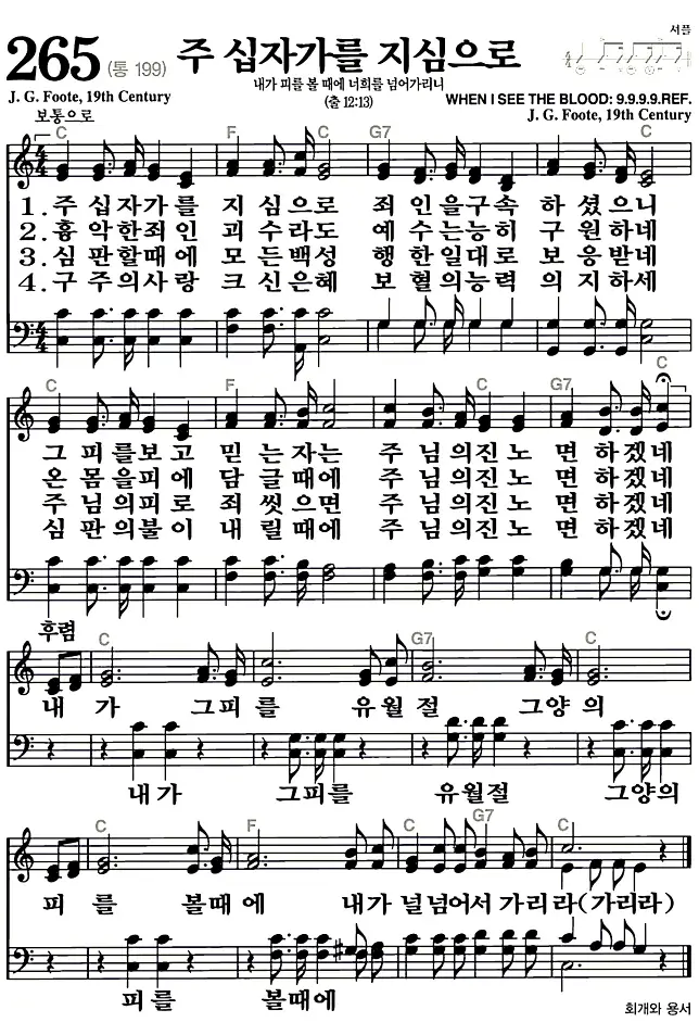 새찬송가_악보] 265장 - 주 십자가를 지심으로 다운로드(고화질/인쇄용)