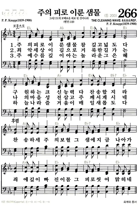 새찬송가_악보] 266장 - 주의 피로 이룬 샘물 다운로드(고화질/인쇄용)