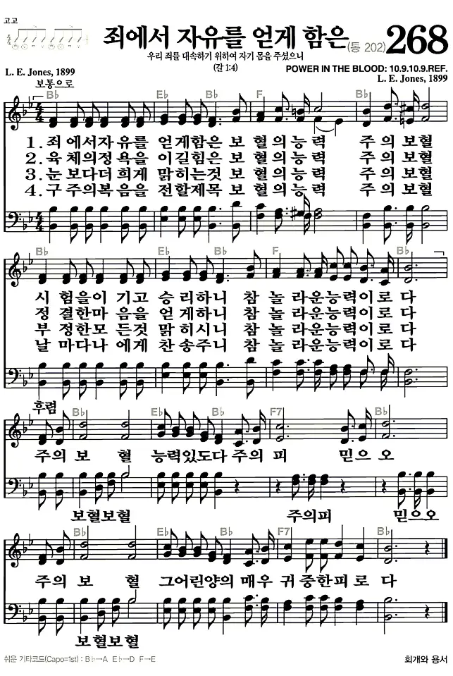 새찬송가_악보] 268장 - 죄에서 자유를 얻게 함은 다운로드(고화질/인쇄용)