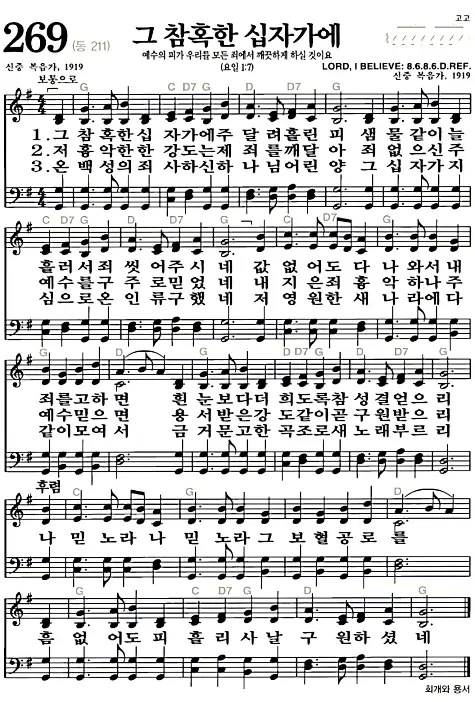 새찬송가_악보] 269장 - 그 참혹한 십자가에 다운로드(고화질/인쇄용)
