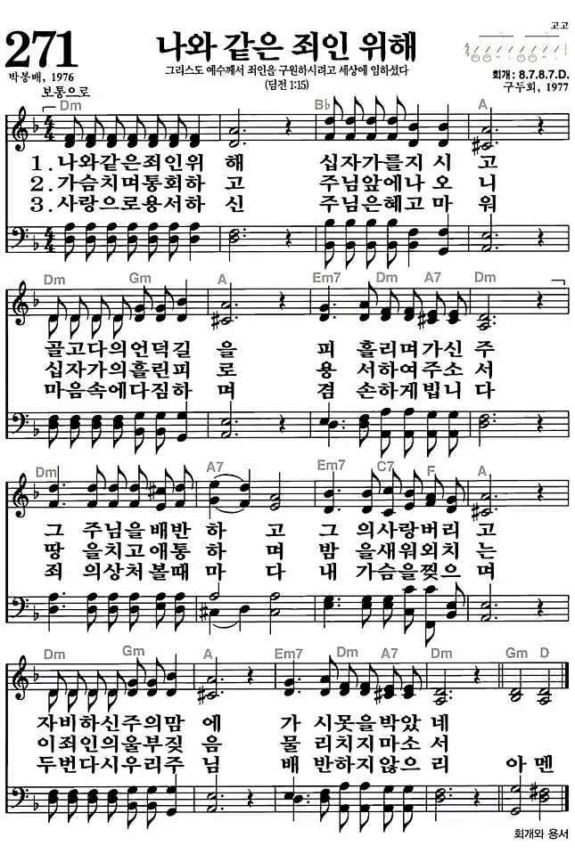 271장 - 나와 같은 죄인 위해 찬송가의 고화질 악보입니다.