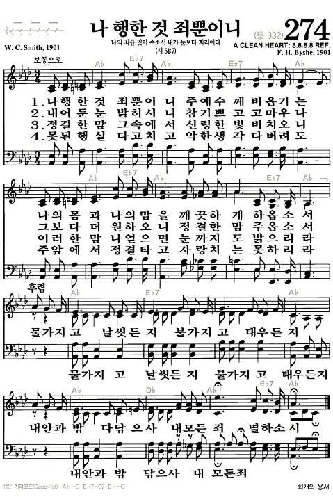 새찬송가_악보] 274장 - 나 행한 것 죄뿐이니 다운로드(고화질/인쇄용)