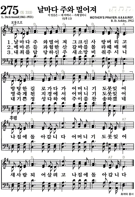 새찬송가_악보] 275장 - 날마다 주와 멀어져 다운로드(고화질/인쇄용)