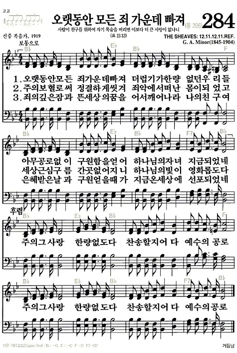 새찬송가_악보] 284장 - 오랫동안 모든 죄 가운데 빠져 다운로드(고화질/인쇄용)