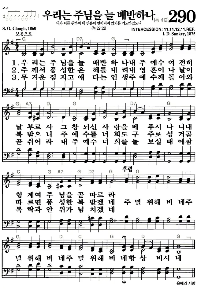 새찬송가_악보] 290장 - 우리는 주님을 늘 배반하나 다운로드(고화질/인쇄용)