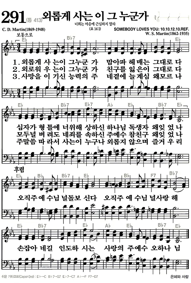 새찬송가_악보] 291장 - 외롭게 사는 이 그 누군가 다운로드(고화질/인쇄용)